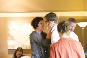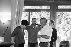 Het zit erop, ik kan gaan zitten en de rest over me heen laten komen. Natasja houdt haar speech vol tranen maar zo mooi en lief. Vervolgens hoor ik Michiel zeggen. ‘De volgende die iets willen zeggen zijn Maureen en Stijn’ Ik schiet gelijk omhoog, de tranen in mijn ogen en een brok in mijn keel. Wat? Maureen en Stijn?? Dat ze dat durven! Wat een kanjers! Ik wil niet huilen, slikken en blijven ademhalen. En wat een super gave toespraak houden ze. Wat moet ik lachen. Super, super trots.