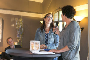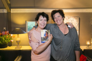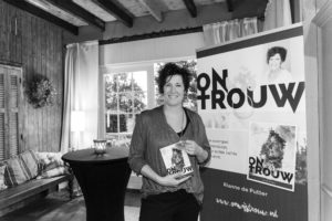 Gelukkig staat er een statafel. Kan ik daar zo veilig achter staan met daarop mijn toespraak. Hoef ik gelukkig alleen een microfoon vast te houden. Valt mijn trillende hand minder op. Diepe zucht kijk ik de groep rond. Allemaal lieve mensen die ik goed ken. Waarom maak ik me dan zo druk? Nou gewoon omdat ik dit nog nooit gedaan heb! Mijn stem slaat over, schraap mijn keel trek mijn schouders op en nog een hele diepe zucht. ‘Kom op, Rianne’ denk ik, ‘je kan het!’ De eerste zinnen lopen wat stroef, de zenuwen zakken weg en langzamerhand geniet ik er gewoon van. Vol trots doe ik mijn verhaal over de reis van het schrijven en als slot overhandig ik mijn eerste exemplaar aan Natasja. Ook weer zo’n emotioneel moment.